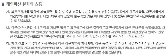 📌 개인파산 절차는 법원에 신청한 후 면책 결정을 받는 과정입니다.