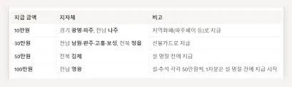 | 구분 | 1차 지급액 (기본) | 2차 추가 지급액 (소득 하위 90%) | 지역 추가 지원 (1차) |