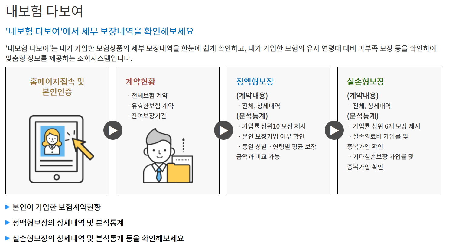 - '내보험찾아줌' 활용: 포털에서 '내보험찾아줌' 검색 후 공식 홈페이지(cont.insure.or.kr)에서 간편하게 조회할 수 있습니다.