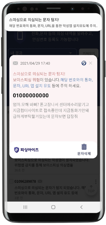 ✔ 스미싱 메시지 자동 감지