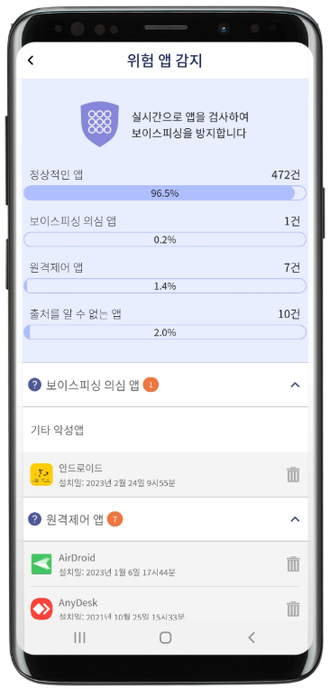 ✔ 악성 앱 탐지 & 원격 제어 앱 차단